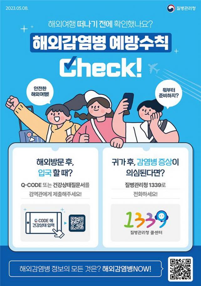 ÀÌ¿¡ µµ´Â ÇØ¿Ü¿©Çà °èȹÀÌ ÀÖ´Â °æ¿ì Ãâ±¹ Àü Áúº´°ü¸®Ã» ´©¸®Áý ¶Ç´Â Äݼ¾ÅÍ(¢Ï1339)¸¦ ÅëÇØ °Ë¿ª °ü¸®Áö¿ª, ¹æ¹® ±¹°¡ÀÇ °¨¿°º´ ¹ß»ý ÇöȲ, ±ÇÀå ¹é½Å¡¤¿¹¹æ Á¤º¸ µîÀ» ¹Ýµå½Ã ¼÷ÁöÇØ¾ß ÇÑ´Ù°í °Á¶Çß´Ù.