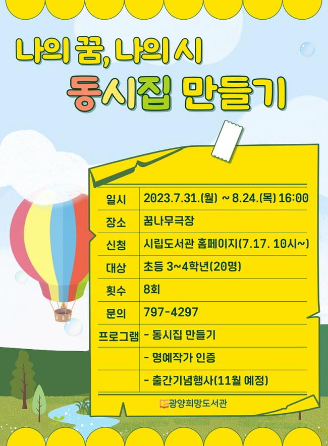 ¼ö¾÷ ÈÄ¿¡´Â ÀÛǰµéÀ» ¸ð¾Æ µ¿½ÃÁýÀ¸·Î Ãâ°£ÇØ ¾ÆÀ̵鿡°Ô µ¶ÀÚ¿¡¼ ÀÛ°¡°¡ µÇ´Â Ưº°ÇÑ °æÇèÀ» ¼±»çÇÒ °èȹÀÌ´Ù.µ¿½ÃÁý ¸¸µé±â ¼ö¾÷¿¡ Âü¿©ÇÏ°í ½ÍÀº ¾î¸°À̵éÀº ¿À´Â 17ÀÏ(¿ù) ¿ÀÀü 10½ÃºÎÅÍ ±¤¾ç½Ã¸³µµ¼°ü ´©¸®Áý¿¡¼ ½ÅûÇÏ¸é µÈ´Ù.