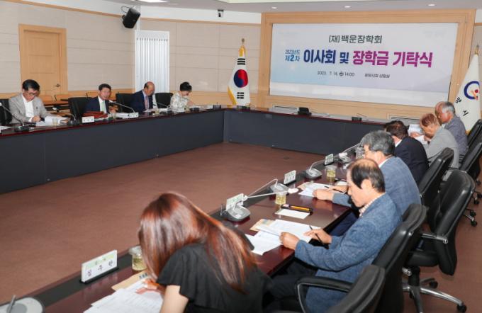 À̹ø ÀÌ»çȸ´Â ÀÌ»çÀåÀÎ Á¤ÀÎÈ ±¤¾ç½ÃÀåÀ» ºñ·ÔÇÑ 12¸íÀÇ ÀÌ»ç¿Í 2¸íÀÇ °¨»ç°¡ Âü¼®ÇÑ °¡¿îµ¥ ¡ã(Àç)¹é¿îÀåÇÐȸ Á¤°ü °³Á¤(¾È) ¡ã±âº»Àç»ê ÁõÀÚ(¾È) ¡ã2023³â ±âºÎ±Ý »ç¿ë°èȹ ½ÂÀÎ(¾È) ¡ã2023³â Á¦1Â÷ ¼¼ÀÔ¡¤¼¼Ãâ Ãß°¡°æÁ¤ ¿¹»ê(¾È) ¡ã2023³â ¹é¿îÀåÇлý ¼±¹ß °èȹ µî ÃÑ 5°ÇÀÇ ¾È°ÇÀ» ½ÉÀÇ ÀǰáÇß´Ù.
