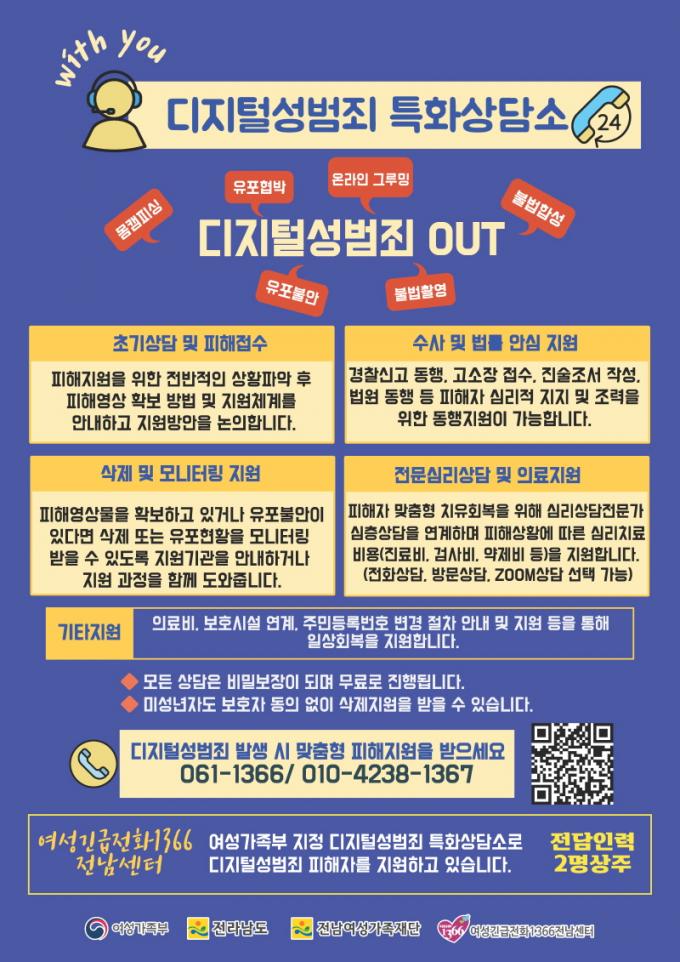 ÃÖ±Ù 3³â Àü³²µµ µðÁöÅÐ ¼º¹üÁË ½Å°í °Ç¼ö´Â 846°Ç, ½ºÅäÅ· ÇÇÇØ ½Å°í °Ç¼ö´Â 1õ195°ÇÀ¸·Î ¸Å³â ±ÞÁõ Ãß¼¼´Ù. ÀÌ¿¡ Áö³ 3¿ù ¡®¼ºÎ±Ç µðÁöÅÐ ¼º¹üÁË Æ¯È»ó´ã¼Ò¡¯ ¿î¿µ¿¡ À̾î 7¿ù Áß¼ø ¡®µ¿ºÎ±Ç µðÁöÅÐ ¼º¹üÁË Æ¯È»ó´ã¼Ò¡¯¸¦ Ãß°¡ ¿î¿µÇÑ´Ù. Àü³²ÀÇ Áö¸®Àû Ư¼º µîÀ» °í·ÁÇØ ÇÇÇØÀÚ¸¦ Á» ´õ ÃÎÃÎÇÏ°Ô Áö¿øÇϱâ À§ÇØ Áö³ 14ÀÏ µµ ÀÚü °ø¸ð»ç¾÷À¸·Î ¡®µ¿ºÎ±Ç µðÁöÅÐ ¼º¹üÁË Æ¯È»ó´ã¼Ò ¿î¿µ¡¯ »ç¾÷ ¼öÇà±â°üÀ» ¼±Á¤Çß´Ù. µðÁöÅÐ ¼º¹üÁË Æ¯È»ó´ã¼Ò´Â 24½Ã°£ Àü¹® »ó´ã, ÇÇÇØ ¿µ»ó¹° »èÁ¦ Áö¿ø, ¼ö»ç±â°ü¡¤¹ý¿ø µ¿Çà, ¹ý·ü¡¤ÀǷἺñ½º ¿¬°è µî 1´ë1 ¸ÂÃãÇü Áö¿ø°ú Ä¡À¯È¸º¹ ÇÁ·Î±×·¥À» Á¦°øÇÑ´Ù. ¼ºÎ±Ç ¼º¹üÁË Æ¯È»ó´ã¼Ò´Â 6¿ù ¸» ±âÁØ Áö³ 4°³¿ù µ¿¾È 54¸í¿¡°Ô »ó´ã ¹× ¸ÂÃãÇü ¼ºñ½º¸¦ ¿¬°è Áö¿øÇß´Ù.