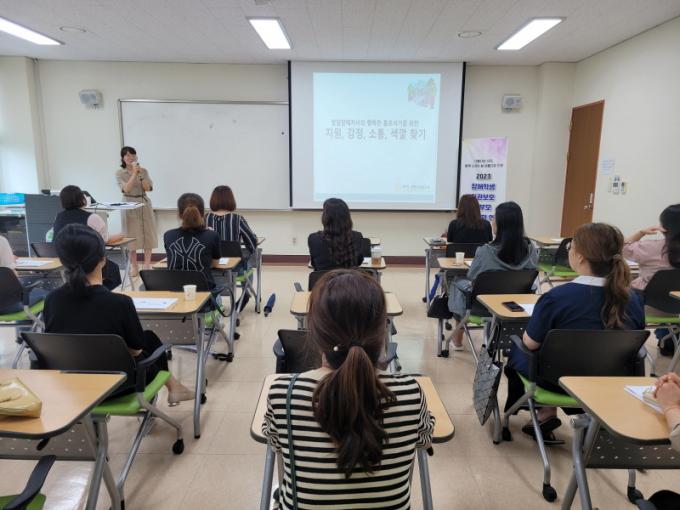 À̹ø ¿¬¼ö´Â ¡ãÁö¿ø ¡ã°¨Á¤ ¡ã¼ÒÅë ¡ã»ö±ò ã±âÀÇ 4°¡Áö Å׸¶·Î ±¸¼ºµÆ´Ù. À̳¯ Âü¿©ÇÑ ÇкθðµéÀº ¡ãÀÚ³à¿Í ¼ÒÅëÀ» ÅëÇÑ ¾Æµ¿ÀÇ »ö±ò ã±â ¡ãÀÚ³àÀÇ µµÀü ÇൿÀ» ÀÌÇØÇÏ°í ¿Ã¹Ù¸¥ Áö¿ø ¹æ¹ý ¾Ë±â ¡ãÀÚ³àÀÇ ÀÚ¸³À» ÁغñÇϱâ À§ÇÑ °¡Á¤ÀÇ Áö¿ø ¹Ù·Î ¾Ë±â µîÀÇ È°µ¿À» ÅëÇØ ¹ß´ÞÀå¾Ö ÀÚ³àÀÇ ÇູÇÑ È¦·Î¼±â¸¦ À§ÇÑ ºÎ¸ðÀÇ ¿ªÇÒÀ» ¹è¿ï ¼ö ÀÖ¾ú´Ù.