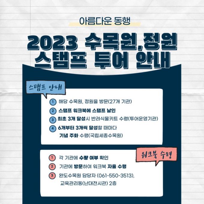 ½ºÅÆÇÁ Åõ¾î´Â ±¹¸³¼¼Á¾¼ö¸ñ¿ø, ±¹¸³¹éµÎ´ë°£¼ö¸ñ¿ø µî Àü±¹ 27°³ °ø¡¤»ç¸³ ¼ö¸ñ¿ø¡¤Á¤¿ø ½Ã¼³°ú Çù¾÷ÇØ ¿î¿µµÈ´Ù. °ü¶÷°´ÀÌ ¿î¿µ±â°üÀ» ¹æ¹®ÇØ ½ºÅÆÇÁ¸¦ ÂïÀ¸¸é ´Ù¾çÇÑ ±â³äǰÀ» Á¦°øÇÏ´Â À̺¥Æ®´Ù. Áö³ÇØ 18°³¼Ò·Î ½ÃÀÛÇßÀ¸¸ç ¹ÝÀÀÀÌ ÁÁ¾Æ ¿ÃÇØ 9°³¼Ò°¡ Ãß°¡·Î Âü¿©Çß´Ù.