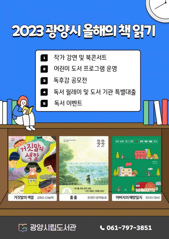 2023 ¿ÃÇØÀÇ Ã¥, ¾î¸°ÀÌ µµ¼ ¡¸°ÅÁþ¸»ÀÇ »ö±ò¡¹ ÇÁ·Î±×·¥ ¿î¿µ ±¤¾ç½Ã´Â ¾î¸°À̸¦ À§ÇÑ ÇÁ·Î±×·¥µµ ÁغñÇß´Ù. 8~9¿ù¿¡´Â Áö¿ª ³» ÃʵîÇб³ 8ÇбÞÀ» ´ë»óÀ¸·Î ¾î¸°ÀÌ µµ¼¡¸°ÅÁþ¸»ÀÇ »ö±ò¡¹ µ¶ÈÄ ÇÁ·Î±×·¥À» ¿î¿µÇÑ´Ù. ÇÁ·Î±×·¥Àº ¡®°ÅÁþ¸»¿¡ ´ã±ä ¸¶À½ÀÇ »ö±ò¡¯À̶ó´Â ÁÖÁ¦·Î ÇÔ²² »ý°¢À» ¸ðÀ¸°í, ¸¶À½À» Àаí Ç¥ÇöÇØ º¼ ¿¹Á¤ÀÌ´Ù.