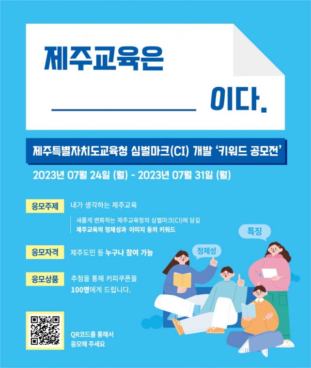 À̹ø ¡®Å°¿öµå¡¯°ø¸ð´Â Á¦ÁÖ±³À°ÀÌ Áö´Ñ Á¤Ã¼¼º, Ư¡, À̹ÌÁö, ÁöÇâÁ¡ µîÀ»¡®³»°¡ »ý°¢ÇÏ´Â Á¦ÁÖ±³À°¡¯¿¡ ´ëÇÑ Å°¿öµå·Î Á¦¾È¹Þ°í Àִµ¥ Á¦ÁÖµµ¹ÎÀÌ¸é ´©±¸³ª ÀÀ¸ð °¡´ÉÇϸç, ±³À°Ã» ¹× °¢±Þ Çб³ ȨÆäÀÌÁö QRÄڵ带 ÅëÇØ Á¢¼ÓÀÌ °¡´ÉÇÏ´Ù.
