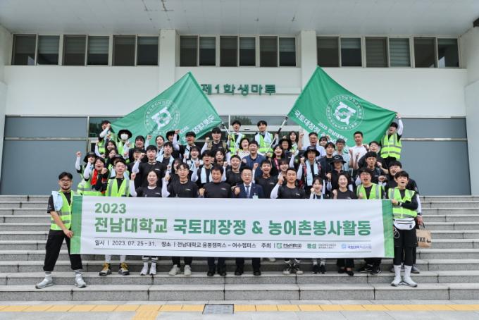 50¿© ¸íÀÇ ÇлýÀ» ºñ·ÔÇØ ±³Á÷¿ø°ú ¾ÈÀü¿ä¿ø µî ¾à 60¸íÀ¸·Î ±¸¼ºµÈ Àü³²´ë ±¹Åä´ëÀåÁ¤ ´ë¿øµéÀº ±¤ÁÖ Ä·ÆÛ½º¿¡¼ ¿©¼öÄ·ÆÛ½º±îÁö ¾à 77km °Å¸®¸¦ µµº¸·Î Ⱦ´ÜÇÑ´Ù.