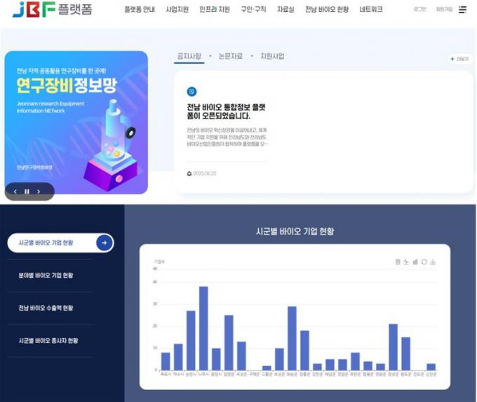 ¡®Àü³² ¹ÙÀÌ¿À ¿ø½ºÅé Ç÷§Æû¡¯Àº Àü³² ¹ÙÀÌ¿À»ê¾÷ ÁøÈï°ú ±â¾÷ Áö¿øÀ» À§ÇÑ °ÍÀ¸·Î ÀÔÁÖ °ø°£, ¿¬±¸Àåºñ Ȱ¿ë, ÅõÀÚ Áö¿ø, Á¤ºÎ¡¤ÁöÀÚü Áö¿ø»ç¾÷, ±¸ÀΡ¤±¸Á÷, ƯÇ㡤ÀÎÁõ µî ¹ÙÀÌ¿À ºÐ¾ß À¯¿ëÇÑ Á¤º¸¸¦ Á¦°øÇÑ´Ù.