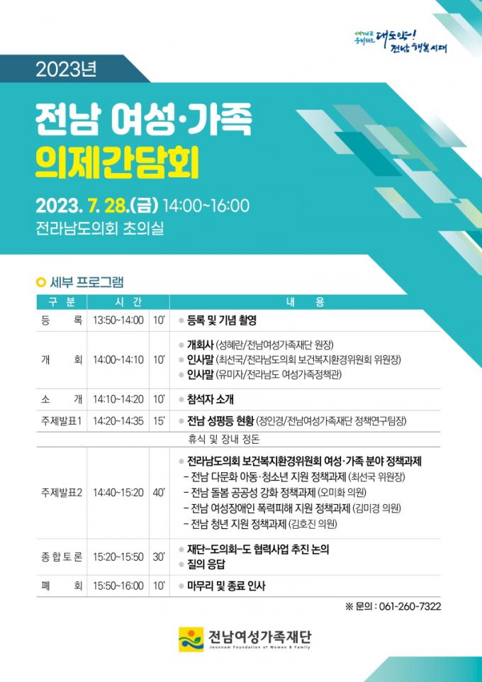 À̹ø °£´ãȸ´Â Àü³²¿©¼º°¡Á·Àç´Ü°ú Àü³²µµÀÇȸ º¸°Çº¹Áöȯ°æÀ§¿øÈ¸, Àü¶ó³²µµ ¿©¼º°¡Á·Á¤Ã¥°ü½Ç °ü°èÀÚµéÀÌ Âü¿©ÇÑ °¡¿îµ¥ ÁÖÁ¦ ¹ßÇ¥¸¦ ½ÃÀÛÀ¸·Î Á¾ÇÕÅä·Ð±îÁö À̾îÁø´Ù.