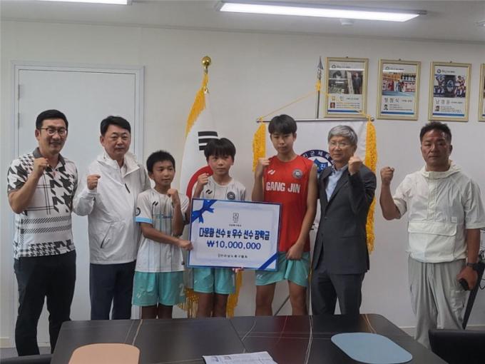 ´ëÇ¥·Î °ÁøFC U-15ÆÀ ¼ÛÈ£µ¿, ¹ÚÀ縸, À̹®¼ö Çлýµé¿¡°Ô ÀåÇÐ±Ý 50¸¸¿ø°ú ÀåÇÐÁõ¼¸¦ ¼ö¿©Çß°í À̿ܿ¡ Çлýµé¿¡°Ô´Â °èÁÂÀÌü ¹× ¿ìÆíÀ» ÅëÇØ ÀåÇбݰú ÀåÇÐÁõ¼¸¦ Àü´ÞÇß´Ù.