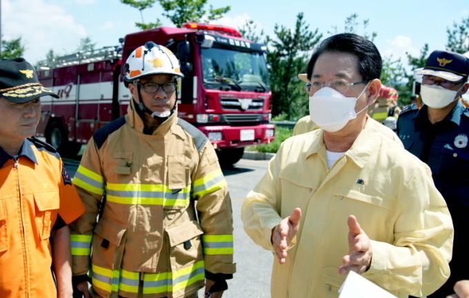 ±è¿µ·Ï Áö»ç´Â ¶¯ºµ ´õÀ§¿¡ °í»ýÇÏ´Â ¼Ò¹æ´ë¿øÀ» °Ý·ÁÇÏ¸ç ¡°¾ÈÀü¿¡ À¯ÀÇÇÒ °Í¡±À» ´çºÎÇß´Ù. ÀÌ¾î ¡°À̹ø Ư¼öÈÀç´Â ÅÂdzÀÇ ¿µÇâÀ¸·Î ºñ°¡ ¿Ã °æ¿ì Æø¹ß À§ÇèÀÌ ÀÖÀ¸¹Ç·Î ÀÌ¿¡ ´ëÇÑ ´ëÃ¥À» ¼¼¿ö°¡¸é¼ ÁøÈÇÏ¶ó¡±¸ç ¡°¾ÕÀ¸·Î´Â À§Çè ¹°ÁúÀº ºÐ¸®ÇØ ÀûÄ¡ÇÏ´Â ¹æ¾Èµµ °±¸ÇÒ °Í¡±À» Áö½ÃÇß´Ù.