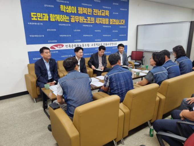 ÀÌ¿¡ ±è´ëÁß ±³À°°¨Àº ¡°Àü³²±³À° ´ëÀüȯÀ» À§Çؼ´Â ¼ÒÅë°ú °ø°¨À» ÅëÇÑ ³ë»ç Çù·ÂÀÌ Áß¿äÇÏ´Ù.¡±¸é¼ ¡°³ëÁ¶¿¡¼ Á¦½ÃÇÑ Àǰ߿¡ °³¼±ÀÌ ÇÊ¿äÇÑ »çÇ×ÀÌ ÀÖÀ¸¸é ÃæºÐÈ÷ ¹Ý¿µµÉ ¼ö ÀÖµµ·Ï ³ë·ÂÇϰڴÙ.¡±°í ¸»Çß´Ù. ¶ÇÇÑ ¡°¾ÕÀ¸·Îµµ ³ëÁ¶¿Í ¼ÒÅëÇÒ ¼ö ÀÖ´Â ÀÚ¸®¸¦ ¸¶·ÃÇØ °ÝÀÇ ¾ø´Â ´ëȸ¦ À̾°Ú´Ù.¡±°í ¾à¼ÓÇß´Ù.