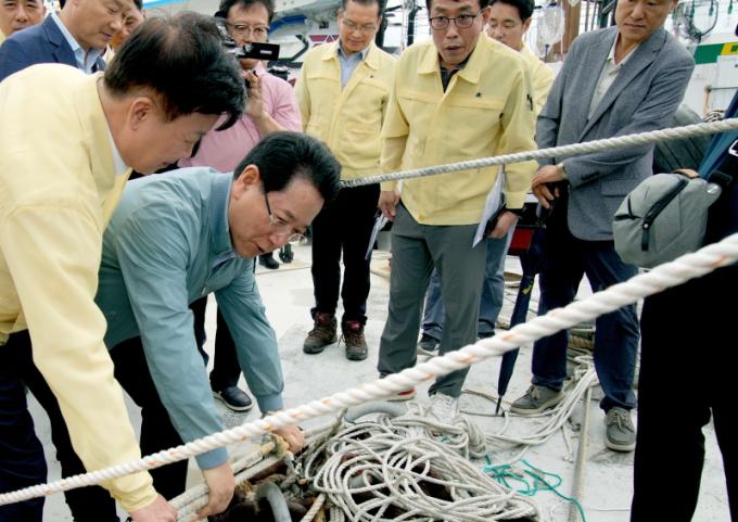| ±è¿µ·Ï Àü¶ó³²µµÁö»ç°¡ 9ÀÏ Á¦6È£ ÅÂdz ¡®Ä«´«¡¯ ºÏ»ó¿¡ µû¸¥ ÇØ¾È½Ã¼³ ´ëºñÇöÀåÀ» Á¡°ËÇϱâ À§ÇØ ¿©¼ö ±¹µ¿Ç×À» ¹æ¹®, Ç׸¸À» µÑ·¯º¸¸ç ÇÇÇ×µÈ ¼±¹ÚÀÇ °á¹Ú»óŸ¦ È®ÀÎÇϰí ÀÖ´Ù. |