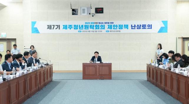 ¡®Á¦7±â û³â¿øÅ¹È¸ÀÇ Á¦¾ÈÁ¤Ã¥ ³»óÅäÀÇ¡¯°¡ 14ÀÏ ¿ÀÀü 10½Ã Á¦ÁÖµµÃ» º»°ü 4Ãþ ޶óȦ¿¡¼ ¿À¿µÈÆ Áö»ç¿Í ±âȹÁ¶Á¤½ÇÀå µî ½Ç±¹ÀåÀ» ºñ·ÔÇØ Á¦7±â û³â¿øÅ¹È¸ÀÇ Ã»³âÀ§¿ø µî 30¿©¸íÀÌ Âü¼®ÇÑ °¡¿îµ¥ °³ÃֵƴÙ.