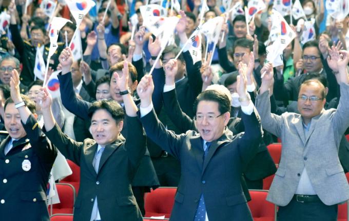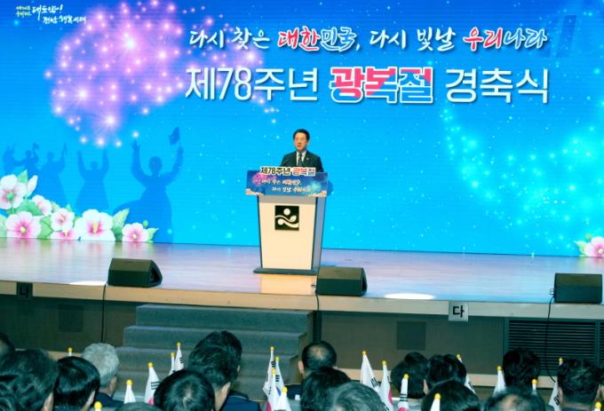 °æÃà½Ä¿¡´Â ±è¿µ·Ï Àü³²µµÁö»ç¿Í ¾Ö±¹Áö»ç À¯Á· ¹× ±¤º¹È¸¿ø, ±â°ü¡¤´ÜüÀå µî 900¿© ¸íÀÌ Âü¼®ÇØ ±¤º¹ÀÇ Àǹ̸¦ µÇ»õ±â°í, ³ª¶ó¸¦ À§ÇØ Çå½ÅÇÑ ¾Ö±¹¼±¿ÀÇ ¼þ°íÇÑ ¶æÀ» ±â·È´Ù. ¡®´Ù½Ã ãÀº ´ëÇѹα¹, ´Ù½Ã ºû³¯ ¿ì¸®³ª¶ó¡¯¸¦ ÁÖÁ¦·Î ¿¸° °æÃà½ÄÀº µ¶¸³À¯°øÀÚ Æ÷»óÀ» ½ÃÀÛÀ¸·Î, ±¤º¹È¸ ±â³ä»ç, °æÃà»ç, ºñ½½¹«¿ë´Ü°ú ¸ñÆ÷½Ã¸³ÇÕâ´Ü ±â³ä°ø¿¬, ±¤º¹Àý ³ë·¡ Á¦Ã¢, ¸¸¼¼»ïâÀ¸·Î ÁøÇàµÆ´Ù.