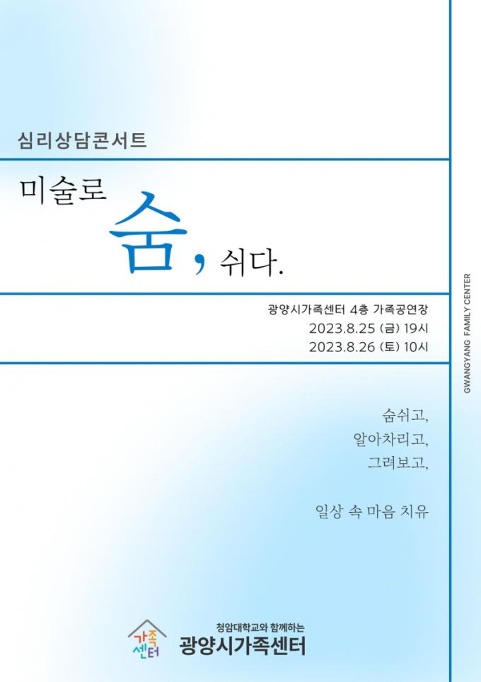 ½É¸®»ó´ãÄܼƮ´Â ¼û ½¬°í, ¾Ë¾ÆÂ÷¸®°í, ¸í»óÇÏ´Â ÁÖüÀû Ȱµ¿À» ÅëÇØ ÀÚ½ÅÀÇ »îÀ» °ø°¨Çϰí Àڱ⵹º½°ú ¿¹¼ú Ä¡À¯¸¦ °æÇèÇÏ´Â ½Ã°£À¸·Î ÁøÇàµÉ ¿¹Á¤ÀÌ´Ù.