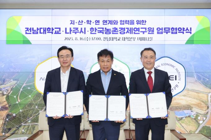 Àü³²´ë´Â 1909³â ±¤ÁÖ³ó¾÷Çб³°¡ Àü½ÅÀ̰í, ³ªÁֽô õ³âÀÇ ¿ª»ç¸¦ À̾î¿Â °îâÁö´ëÀ̸ç, Çѱ¹³óÃ̰æÁ¦¿¬±¸¿ø ¶ÇÇÑ ³óÃ̰æÁ¦¹®Á¦¸¦ ¿¬±¸ÇÏ´Â °÷À¸·Î, ¼¼ ±â°ü ¸ðµÎ ³ó¾÷°ú ¹ÐÁ¢ÇÏ´Ù´Â °øÅëºÐ¸ð ´öºÐ¿¡ »óÈ£ ¹Ì·¡ ¹ßÀü µµ¸ð¿¡ ´õ Å« µµ¿òÀÌ µÉ Àü¸ÁÀÌ´Ù. À±º´Å ³ªÁÖ½ÃÀåÀº ¡°Àü³²´ë ³óÀåÀÌ ³ªÁֽà ºÀȲ¸é¿¡ ÀÚ¸® Àâ°í ÀÖ¾î¼ ´ëÇаú´Â ±íÀº Àο¬ÀÌ ÀÖ´Ù°í »ý°¢ÇÑ´Ù.¡±¸ç ¡°»õ·Î¿î Â÷¿øÀÇ ¹Ì·¡ ³ó¾÷À» °í¹ÎÇÏ´ø Áß¿¡ À̹ø ¾÷¹«Çù¾àÀ» °è±â·Î ±¸Ã¼ÈÇÒ ¼ö ÀÖ´Â ±â¹ÝÀ» ¸¶·ÃÇß´Ù´Â Á¡À» ¶æ±í°Ô »ý°¢ÇÑ´Ù.¡±°í ¸»Çß´Ù.