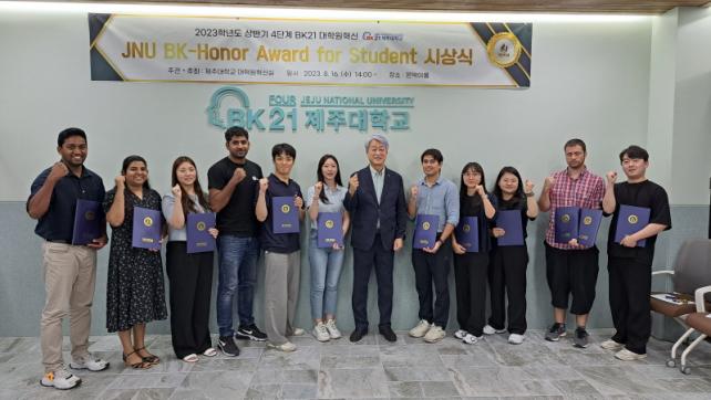 ¼ö»óÀÚ´Â ³í¹®½ÇÀû, Çмú´ëȸ Âü°¡, ƯÇã½ÇÀû µî ¿¬±¸È°µ¿ ¼º°ú¿¡ µû¶ó ¼±¹ßÇßÀ¸¸ç, ºÎ»óÀ¸·Î JNU BK-Honor Scholarship(ÃÑÀå»ó 2,700õ¿ø, ´ëÇпøÀå»ó 2,000õ¿ø)À» Áö±ÞÇÑ´Ù.