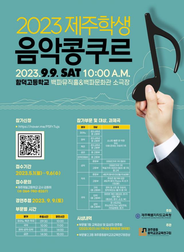 Á¢¼ö±â°£Àº 2023³â 5¿ù 1ÀÏ(¿ù)ºÎÅÍ 9¿ù 6ÀÏ(¼ö)±îÁö·Î ºÎ¹®º° 1µîÀº ±³À°°¨»ó ¼ö¿© ¹× ÀÔ»óÀÚ ¿¬ÁÖȸ (2023. 10. 11.(¼ö) 19:00 ¹®¿¹È¸°ü ´ë±ØÀå)¿¡ Ã⿬Çϰí, 2, 3µîÀº ºÎ¹®º° Á¦ÁÖÁßµîÀ½¾Ç±³°ú±³À°¿¬±¸È¸Àå»óÀ» ¹Þ°Ô µÈ´Ù.