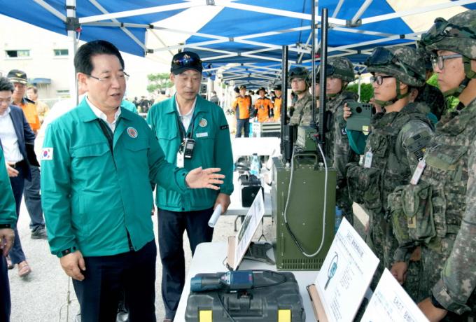 ÈÆ·Ã Á¾·á ÈÄ ±è¿µ·Ï Áö»ç´Â °ÆòÀ» ÅëÇØ ¹«´õ¿î ³¯¾¾¿¡ ±¸½½¶¡À» È긮¸ç ÈÆ·Ã¿¡ Âü°¡ÇÑ ±ºÀÎ, °æÂû°ü, ¼Ò¹æ°ü°ú À¯°ü±â°ü ÀÓÁ÷¿øÀ» °Ý·ÁÇß´Ù. ÀÌ¾î ¡°µå·ÐÅ×·¯ ´ëÀÀ¿¡¼ºÎÅÍ Àû ƯÀÛºÎ´ë °Ý¸ê, ÈÀç Áø¾Ð, ÀÎ¸í±¸Á¶, »ç°í ¼ö½À±îÁö ¹Î¡¤°ü¡¤±º¡¤°æ¡¤¼Ò¹æÀÌ ÈûÀ» ¸ð¾Æ ü°èÀûÀÌ°í ½Å¼ÓÇÏ°Ô ´ëóÇÏ´Â ¸ð½À¿¡ µµ¹ÎÀÇ ÇÑ »ç¶÷À¸·Î¼ ¸¶À½ÀÌ µçµçÇß´Ù¡±¸ç ¡°À̹ø ÈÆ·Ã¿¡¼ ºÎÁ·Çß´ø ºÎºÐÀº °³¼± ¹æ¾ÈÀ» ¸¶·ÃÇØ º¸´Ù ¿Ïº®ÇÑ ´ëÀÀ ż¼¸¦ °®ÃçÁÖ±æ ¹Ù¶õ´Ù¡±°í ´çºÎÇß´Ù.