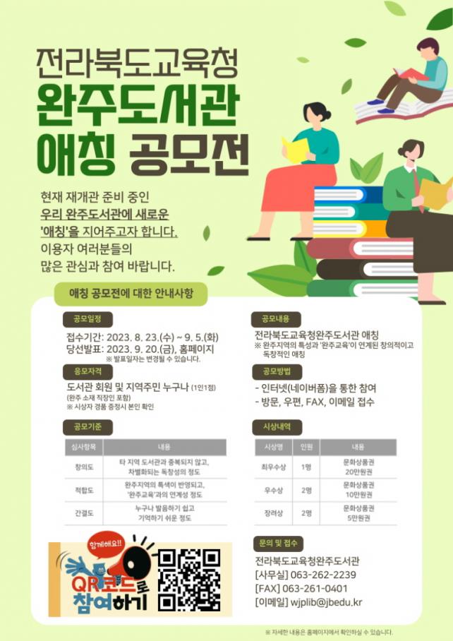 ¾ÖĪ °ø¸ðÀü °ü·Ã ÀÚ¼¼ÇÑ »çÇ×Àº µµ¼°ü ´©¸®Áý(lib.jbe.go.kr/wjplib)ÀÇ °øÁö»çÇ×À» Âü°íÇϰųª °ø¸ðÀü ´ã´ç(063-262-2239)À¸·Î ¹®ÀÇÇÏ¸é µÈ´Ù.
