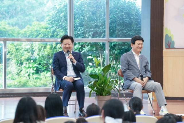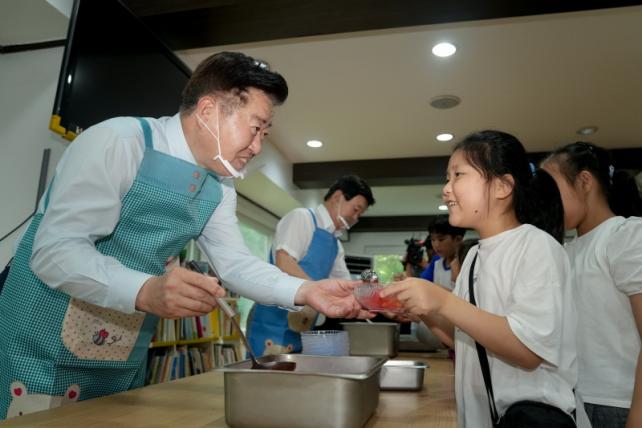 À̳¯ ¿À¿µÈÆ Áö»ç¿Í ±è±¤¼ö ±³À°°¨Àº ºñÀüÁö¿ª¾Æµ¿¼¾ÅÍ ¾Æµ¿ 30¿© ¸í°ú ÇÔ²² °£½ÄÀ¸·Î ¼ö¹ÚÈ並 ¸¸µé°í, ¾Æµ¿µéÀÌ Áö¿ª¾Æµ¿¼¾ÅÍ ÇÁ·Î±×·¥À» ÅëÇØ ¹è¿î ÄÉÀÌÆË(K-pop) ´í½º¿Í ¹êµå °ø¿¬À» °ü¶÷ÇÏ´Â ½Ã°£µµ °¡Á³´Ù.