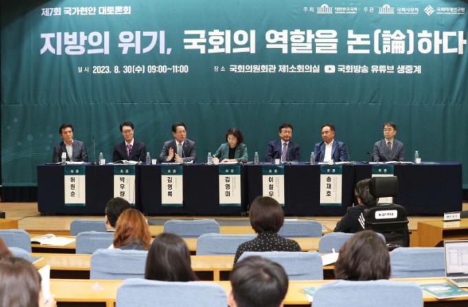 ¡®Áö¹æÀÇ À§±â, ±¹È¸ÀÇ ¿ªÇÒÀ» ³í(Öå)ÇÏ´Ù¡¯¶ó´Â ÁÖÁ¦·Î ¿¸° Åä·Ðȸ¿¡¼ Åä·ÐÀÚ·Î ³ª¼± ±è¿µ·Ï Áö»ç´Â Áö¹æ¼Ò¸ê À§±âÀÇ ÇöÁÖ¼Ò¸¦ Áø´ÜÇϰí, Áö¿ª Çö½Ç°ú ¹ÐÂøµÈ ½Ã°¢À¸·Î ÀÚÄ¡ºÐ±Ç°ú ±ÕÇü¹ßÀüÀ» À§ÇÑ Á¦µµ°³¼±, ÀÔ¹ý°úÁ¦¸¦ Á¦¾ÈÇß´Ù.