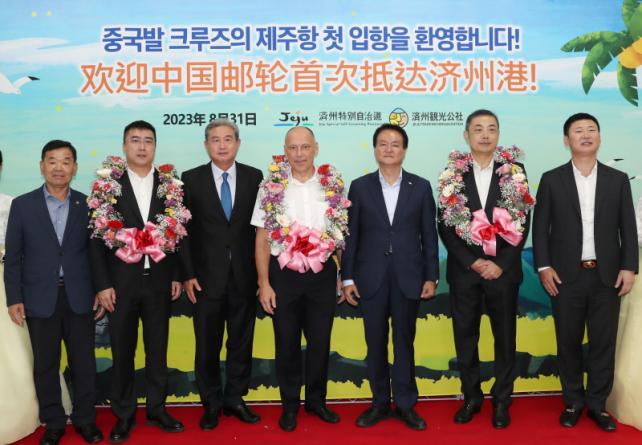 ±¹Á¦¿©°´Å͹̳ο¡¼´Â ±èÈñÇö Á¤¹«ºÎÁö»ç¿Í Áß±¹ Å©·çÁî ¼±»ç´ëÇ¥°¡ Á¦ÁÖ ±âÇ×±â³ä ¼±¹° ±³È¯½ÄÀ» ÁøÇàÇÑ´Ù. ¿Õ·ç½Å ÁÖÁ¦ÁÖÁß±¹ÃÑ¿µ»çµµ ȯ¿µÇà»ç¿¡ Âü¼®ÇØ Á¦ÁÖ¿¡ ù ÀÔµµÇÏ´Â Áß±¹ÀÎ °ü±¤°´¿¡°Ô ±â³äǰ°ú ²É´Ù¹ßÀ» °Ç³×°í Á¦ÁÖ°¨±Ö Æ÷ÅäÁ¸¿¡¼ ±â³ä»çÁøÀ» ÃÔ¿µÇÑ´Ù.