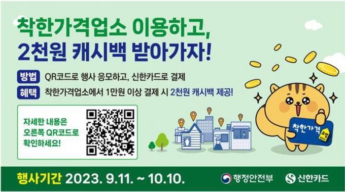 ƯÈ÷, ÇàÁ¤¾ÈÀüºÎ°¡ ½ÅÇÑÄ«µå¿Í Çù¾÷ÇØ ÃßÁøÇÏ´Â ÂøÇÑ °¡°Ý¾÷¼Ò ÀÌ¿ë Ȱ¼ºÈ Çà»ç¸¦ ÅëÇØ ÂøÇÑ °¡°Ý¾÷¼Ò À̿밴À» ´ë»óÀ¸·Î ½ÅÇÑÄ«µå ij½Ã¹é Á¦°ø, Ãß÷À» ÅëÇÑ °æÇ° ÁõÁ¤ µî ½Ã¹ÎµéÀÇ °ü½É°ú µ¿ÂüÀ» À¯µµÇÒ °èȹÀÌ´Ù.