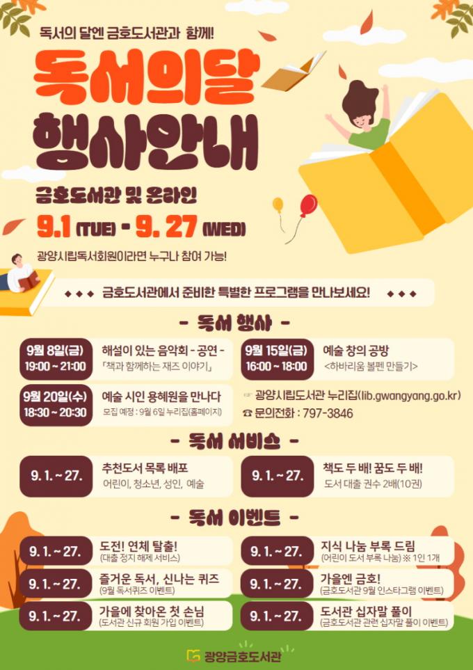 ¶ÇÇÑ, 9¿ù ÇÑ ´Þ »ö´Ù¸¥ Àç¹Ì¸¦ ÁÖ´Â ¡®µ¶¼ÁøÈï À̺¥Æ®¡¯ ÃßÁøÀ¸·Î ¡ãµµ¼°ü¿¡¼ ¿À·ÔÀÌ µ¶¼ÇÏ´Â ½Ã°£À» °®´Â ¸ôÀÔ µ¶¼ 縰Áö ¡¸°íµ¶ÇÑ µ¶¼°¡¡¹ ¡ã´ëÃâµµ¼ Áß¿¡¼ ÇÔ²² ³ª´©°í ½ÍÀº ¹®ÀåÀ» °øÀ¯ÇÏ´Â ÇÊ»ç µ¶¼ À̺¥Æ® ¡¸ÇÊ»çÀÇ ³ª³¯¡¹ ¡ãÀνºÅ¸±×·¥ À̺¥Æ® ¡¸´ëÃâµµ¼ ÀÎÁõ¼¦ ¿Ã¸®±â¡¹ ¡ãµ¶¼ °ø°¨ ¡¸µ¶¼ÄûÁ ¡ãÃ¥ÀÌ µ¹¾Æ¿Â ÀÏ»ó ¡¸¿¬Ã¼ ÇØ¹æ ÁÖ°£¡¹ ¡ã»ç¼ Ãßõ µµ¼ ¸ñ·Ï ¹èÆ÷ ¡¸ÀÌ Ã¥ÀÇ Ã¹ ¹øÂ° µ¶ÀÚ°¡ µÇ¾îÁÖ¼¼¿ä!¡¹ µîÀ» ¿î¿µÇÑ´Ù.