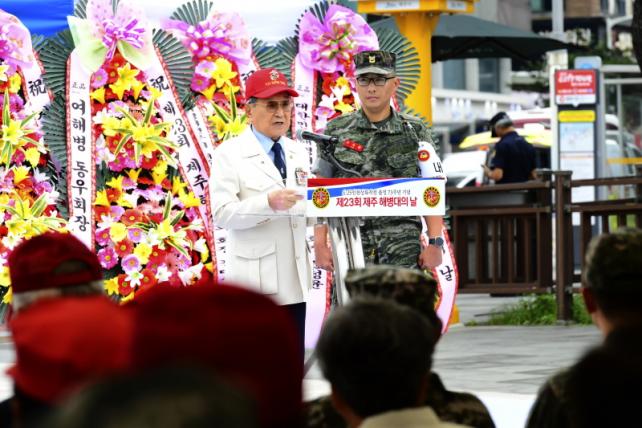 Á¦ÁÖµµ¿Í ´ëÇѹα¹Çغ´´ë»ç·ÉºÎ, ©Å´ëÇѹα¹Çغ´´ëÀü¿ìȸ°¡ ÁÖÃÖÇÑ À̹ø ±â³äÇà»ç´Â ÇØº´ È¥ ž Âü¹è, À¯°øÀÚ Ç¥Ã¢, ÇØº´´ë°¡ Á¦Ã¢ µî ¼øÀ¸·Î ÁøÇàµÆ´Ù.