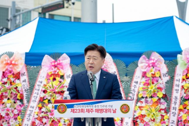 ¿À Áö»ç´Â ¡°6¡¤25°¡ ¹ß¹ßÇÏÀÚ¸¶ÀÚ Á¦ÁÖµµ¹ÎµéÀº ´ëÇѹα¹ÀÇ ÀÚÀ¯¿Í Æòȸ¦ ÁöÄѳ»±â À§ÇØ ÀþÀ½°ú ¸ñ¼ûÀ» ¹ÙÃÆÀ¸¸ç, Á¦ÁÖû³â 3,000¸íÀº ÇØº´´ë¿¡ ÀÚ¿øÀÔ´ëÇØ ÀÎõ»ó·úÀÛÀüÀ» ºñ·ÔÇÑ ¼ö¸¹Àº ÀüÅõÀÇ ¼±µÎ¿¡ ¼¼ Å« °øÀ» ¼¼¿ü´Ù¡±¸ç ¡°Æ¯È÷ µµ¼Ö»êÁö±¸ÀüÅõ ½ÂÀüÀ» °è±â·Î ¹ÞÀº ¡®¹«ÀûÇØº´¡¯ ÈÖÈ£´Â 70¿© ³âÀÌ Áö³ ¿À´Ã³¯¿¡µµ ÇØº´´ëÀÇ ÀÚ±à½ÉÀÌ µÇ°í ÀÖ´Ù¡±°í ¸»Çß´Ù.