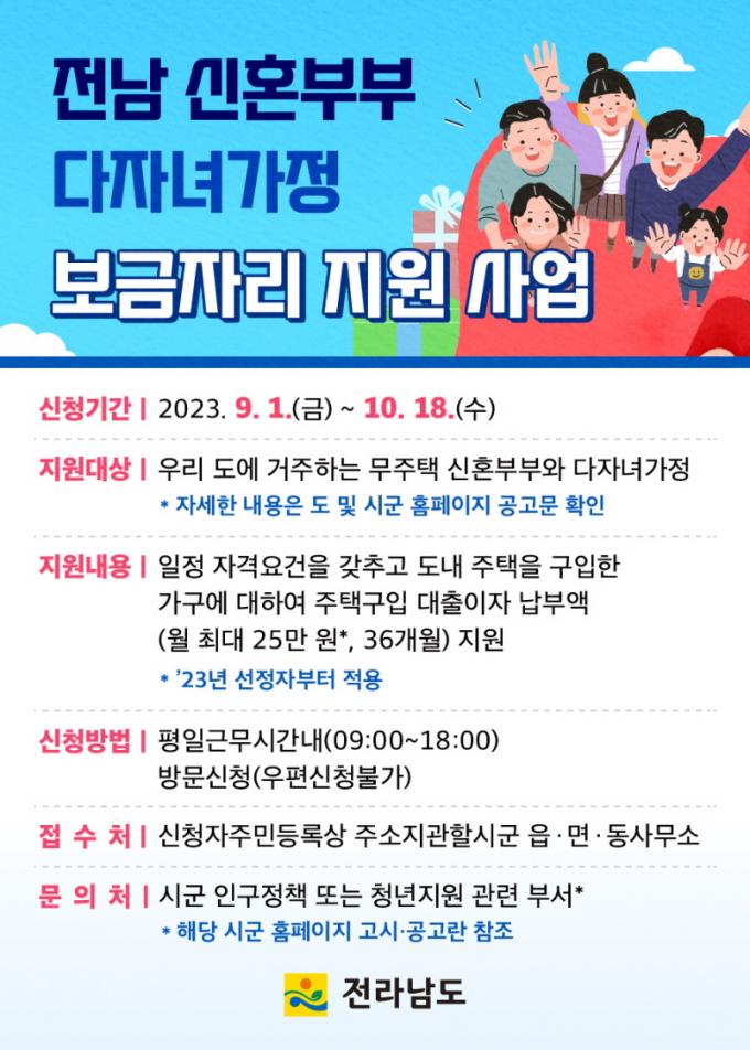 Áö¿ø´ë»óÀº ½ÅûÀÏ ±âÁØ °¡±¸ ±¸¼º¿ø ¸ðµÎ Àü³²¿¡ ÁÖ¼Ò¸¦ µÐ ÀÚ·Î Çѱ¹ÁÖÅñÝÀ¶°ø»ç µî Áö¿ø´ë»ó »óǰÀÇ ´ëÃâ½É»ç¸¦ Åë°úÇÑ ¹«ÁÖÅà ½ÅÈ¥ºÎºÎ ¶Ç´Â ´ÙÀڳడÁ¤ÀÌ´Ù. ¼Òµæ ±âÁØÀº ºÎºÎ ÇÕ»ê ¿¬¼Òµæ 8õ 500¸¸ ¿ø ÀÌÇÏ ½ÅÈ¥ºÎºÎ, 1¾ï ¿ø ÀÌÇÏ ´ÙÀڳడÁ¤ÀÌ´Ù.
