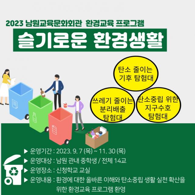 À̹ø ȯ°æ±³À° ÇÁ·Î±×·¥Àº ¡âź¼Ò ÁÙÀÌ´Â ±âÈÄŽÇè´ë ¡â¾²·¹±â ÁÙÀÌ´Â ºÐ¸®¹èÃâ ŽÇè´ë ¡âź¼ÒÁ߸³À» À§ÇÑ Áö±¸¼öÈ£ ŽÇè´ë¶ó´Â 3°¡Áö ÁÖÁ¦·Î ¿î¿µÇÒ ¿¹Á¤ÀÌ¸ç ±âÈÄÀ§±â¿¡ ´ëÇÑ ÀÌÇØ¿Í ź¼ÒÁ߸³ ½Çõ¹æ¹ý¿¡ ´ëÇÑ ³»¿ëÀ¸·Î ±¸¼ºµÇ¾î ÀÖ´Ù.
