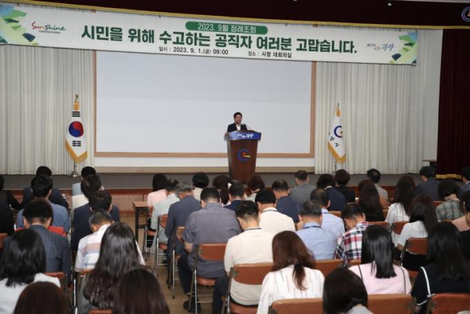 Á¤ÀÎÈ ±¤¾ç½ÃÀåÀº ¡°½Ã¹ÎµéÀ» À§ÇØ Ç×»ó ³ë·ÂÇÏ°í ¸ÃÀº¹Ù ¾÷¹«¿¡ ¼º½ÇÈ÷ ÀÓÇØ ÁØ °øÁ÷ÀÚ ¿©·¯ºÐµé²² °¨»çµå¸°´Ù¡±°í °í¸¶¿òÀ» ÀüÇϸç 9¿ù Á¤·Ê Á¶È¸¸¦ ¸¶¹«¸®Çß´Ù.