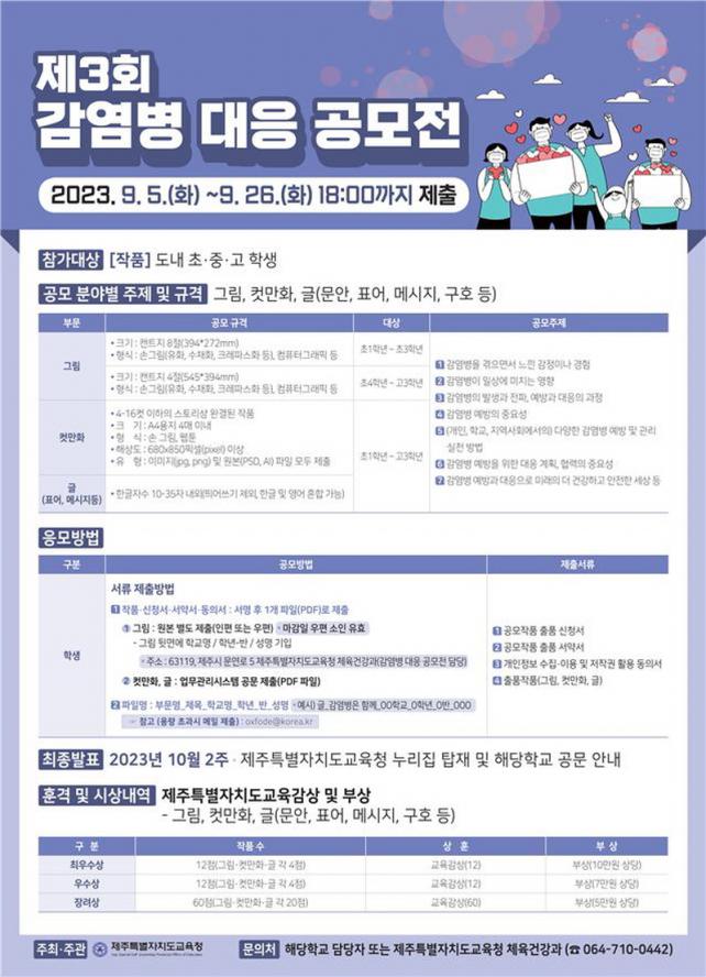 °¨¿°º´ ¿¹¹æ・°ü¸®¿¡ ´ëÇÑ ÀνÄÀ» °íÃëÇϰí (½ÅÁ¾・º¯Á¾) °¨¿°º´À¸·ÎºÎÅÍ ¾ÈÀüÇÏ°í °Ç°ÇÑ Çб³(»çȸ) ¸¸µé±â ¹æ¾È¿¡ ´ëÇØ ½º½º·Î »ý°¢Çغ¸°í ½Çõ¿¡ ¿Å±æ ¼ö ÀÖ´Â °è±â¸¦ ¸¶·ÃÇϰíÀÚ [Á¦3ȸ °¨¿°º´ ´ëÀÀ °ø¸ðÀü]À» °³ÃÖÇÑ´Ù.