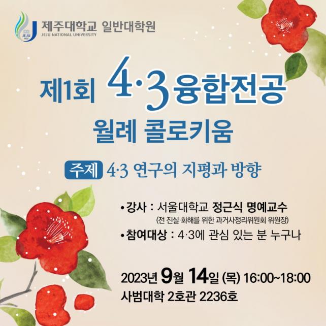ÇÑÆí, Á¦ÁÖ´ë 4¡¤3À¶ÇÕÀü°øÀº ³ÃÀü°ú Å»½Ä¹Î, µð¾Æ½ºÆ÷¶ó¿Í ¹ßÀüÁÖÀÇ µîÀÇ ¹®Á¦ÀÇ½Ä ¼Ó¿¡¼ 4¡¤3 ÀÌÀü°ú 4¡¤3 ÀÌÈĸ¦ ¤¾î³»´Â ´ÙÇÐÁ¦Àû ¿¬±¸¸¦ ÅëÇØ ¡®4¡¤3ÇС¯ÀÇ ÀÌ·ÐÀû¡¤½ÇõÀû ±â¹ÝÀ» È®¸³ÇÏ´Â °ÍÀ» ¸ñÇ¥·Î ÇÑ´Ù. ±¹³»¡¤¿Ü ¿¬±¸ÀÚÀÇ ¿¬±¸ ¼º°ú¿Í °í¹ÎÀ» °øÀ¯Çϰí 4¡¤3¿¬±¸¸¦ »çȸÀûÀ¸·Î È®»êÇϰíÀÚ ¿ù·Ê ÄÝ·ÎŰ¿òÀ» ºñ·ÔÇÏ¿© Ư° ¹× Çмú´ëȸ¸¦ Á¤±âÀûÀ¸·Î ±âȹÇÏ°í °³ÃÖÇÒ °èȹÀÌ´Ù.