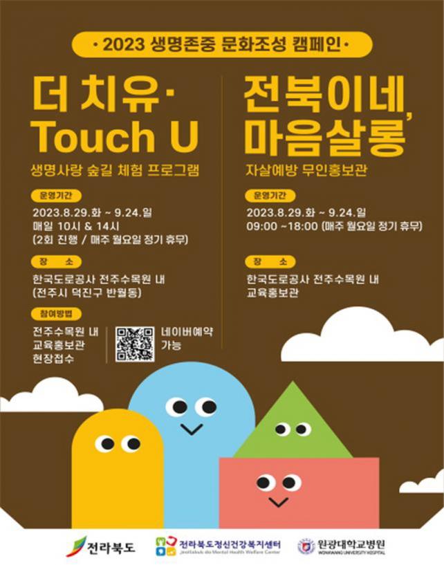 ¡®ÀüºÏÀÌ³× ¸¶À½»ì·Õ¡¯Àº Ä·ÆäÀÎ ±â°£µ¿¾È 9½Ã¿¡¼ 18½Ã±îÁö »ó½Ã ¿î¿µµÇ¹Ç·Î ¼ö¸ñ¿øÀ» ã´Â µµ¹Îµé¿¡°Ô ¸¶À½ÀÇ ÈÞ½ÄÀ» Á¦°øÇÏ°í »ý¸íÁ¸Áß ¹®ÈÁ¶¼ºÀÇ Àǹ̸¦ µÇ»õ±â´Â ÁÁÀº ±âȸ°¡ µÉ °ÍÀ¸·Î º¸ÀδÙ. ÀÌ ¿Ü¿¡µµ °¢ ½Ã±º¿¡¼ ´Ù¾çÇÑ ±â³äÇà»ç¸¦ ÁøÇàÇÑ´Ù. ÀüÁֽà ¡®»ý¸í»ç¶û ¹ÂÁöÄÃ-¸Þ¸®°ñµå:¹Ýµå½Ã ¿À°í¾ß ¸» Çູ¡¯(9.22.), ±º»ê½Ã¡®Àڻ쿹¹æÀdz¯ ±â³ä °È±â Çà»ç¡¯(9.6.), ÀÍ»ê½Ã¡®»ý¸í»ç¶û ÇÔ²² °È±â 縰Áö¡¯(9.1.~20.), Á¤À¾½Ã ¡®»ý¸íÁ¸Áß ½£ üÇè ÇÁ·Î±×·¥¡¯(9.11.~15.), ³²¿ø½Ã ¡®Àڻ쿹¹æÀdz¯ ¿µÈÁ¦¡¯ (9.12.~14.), ¿ÏÁÖ±º¡®»ý¸í»ç¶û ÅäÅ©ÄܼƮ-³ª¸¦ ÁöŰ´Â ¸¶À½ÀÇ Èû¡¯(9.18.) µî ´Ù¾çÇÑ Ä·ÆäÀÎ ÁøÇàÀ¸·Î Àڻ쿹¹æ Àνݳ¼± ¹× »ý¸íÁ¸Áß ¹®ÈÁ¶¼ºÀ» À§ÇÑ »çȸÀû ºÐÀ§±â¸¦ Çü¼ºÇϰíÀÚ ÇÑ´Ù.