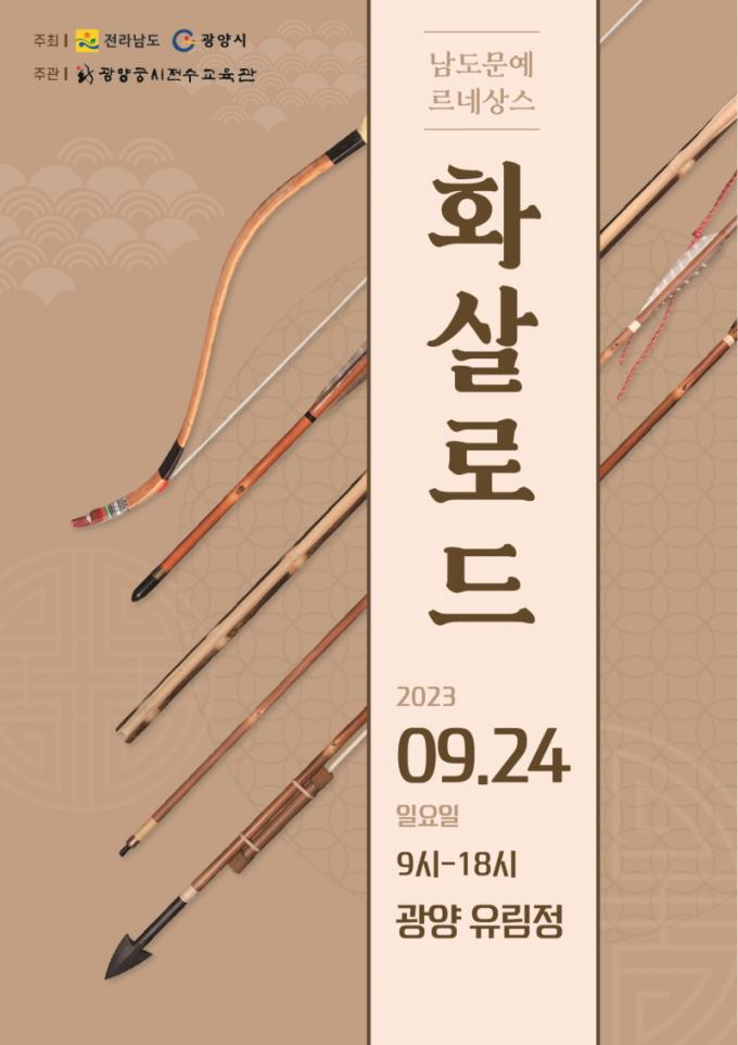 ±¤¾ç±Ã½ÃÀü¼ö±³À°°ü ÁÖ°üÀ¸·Î °³ÃֵǴ À̹ø ¡¸È»ì·Îµå¡¹ ȰÅÍ Æä½ºÆ¼¹úÀº 100¿© ³âÀÇ ¿ª»ç¸¦ Áö´Ñ ±¤¾çÀÇ È°ÅÍ À¯¸²Á¤¿¡¼ ÀüÅë ±Ã½Ã¸¦ ÁÖÁ¦·Î Àü½Ã¡¤°ø¿¬¡¤È°½î±â ¹× ´Ù¾çÇÑ Ã¼Çè µîÀÌ ÁøÇàµÈ´Ù.