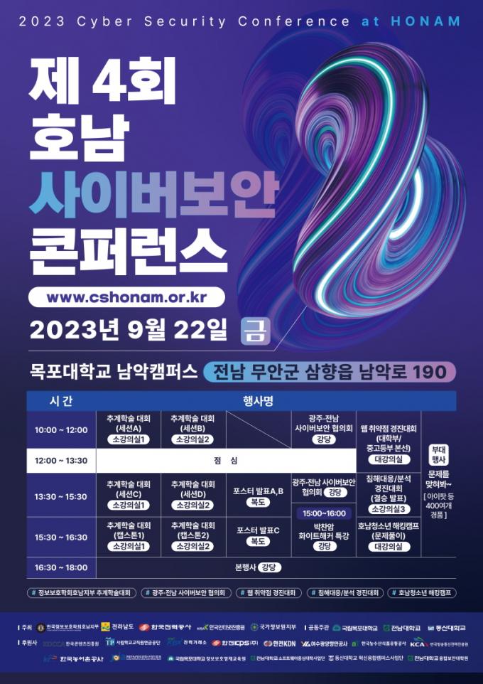 ¿ÃÇØ·Î 4ȸ°¸¦ ¸ÂÀº À̹ø ´ëȸ´Â Àü³²µµ¿Í Çѱ¹Á¤º¸º¸È£ÇÐȸ È£³²ÁöºÎ, Çѱ¹Àü·Â°ø»ç, Çѱ¹ÀÎÅͳÝÁøÈï¿ø, ±¹°¡Á¤º¸¿ø ÁöºÎ°¡ °øµ¿ ÁÖÃÖÇϰí, Çѱ¹ÄÜÅÙÃ÷ÁøÈï¿ø µî ±¹°¡¡¤°ø°ø±â°ü, ±â¾÷, ´ëÇÐ µî 30¿© ±â°üÀÌ ÈÄ¿øÇÑ´Ù.