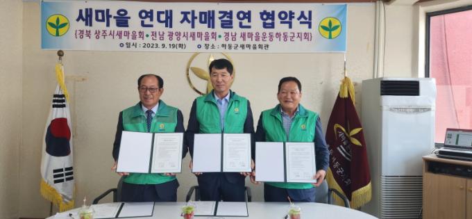 À̳¯ Çà»ç´Â Àü³² ±¤¾ç½Ã»õ¸¶À»È¸¿Í °æºÏ »óÁÖ±º»õ¸¶À»È¸(ȸÀå ÀÌÁ¤Èñ), °æ³² Çϵ¿±º»õ¸¶À»Áöȸ(ÁöȸÀå ÀÓŰæ) 3°³ ½Ã±º ȸÀå´Ü ¹× »õ¸¶À»ÁöµµÀÚ ÃÑ 50¿©¸íÀÌ Âü¼®ÇØ °á¿¬Áõ¼¸¦ ±³È¯ÇÏ°í ½Ã±º°£ÀÇ Áö¿ª»çȸ °øÇåȰµ¿ °øµ¿ ÃßÁø°ú °¢ Áö¿ª Ư»ê¹° ±³·ùÆÇ¸Å µîÀ» À§ÇØ »óÈ£Çù·ÂÇϱâ·Î ´ÙÁüÇß´Ù.