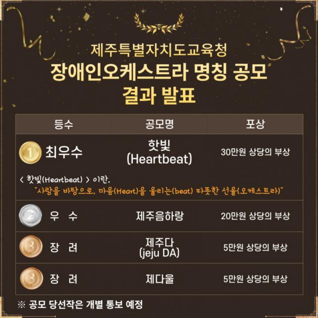 ¾ÕÀ¸·Î¡®Á¦ÁÖÆ¯º°ÀÚÄ¡µµ±³À°Ã» Àå¾ÖÀοÀÄɽºÆ®¶ó¡¯´Â <ÇÖºû(Heartbeat)> ÀÇ °ø½ÄÀ̸§À» °®°í ´Ü¿ø ä¿ë µîÀ» ÁغñÇÑ´Ù. ¶ÇÇÑ, <ÇÖºû(Heartbeat)>Àº â´Ü ÈÄ¿¡´Â ±âȹ °ø¿¬ ¹× Çб³ÀÇ Çлý․±³Á÷¿ø, µµ¹ÎÀÇ Àå¾ÖÀÌÇØ±³À° Ȱµ¿À» Ȱ¹ßÈ÷ ÁøÇàÇÒ °èȹÀ» °®°í ÀÖ´Ù.