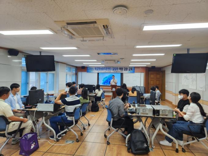 ÀÌ ¼¾ÅÍ´Â °¢±ÞÇб³ Á¤º¸È±â±â¿¡ ´ëÇÑ ÀÚ¿ø ÆÄ¾Ç, ÅëÇÕÀ¯Áö°ü¸®, Á¤º¸¾÷¹« ÄÁ¼³ÆÃ, ½º¸¶Æ® ±³À° ȯ°æ °³¼±, ÅëÇÕÁ¤º¸°ü¸®½Ã½ºÅÛ ¿î¿µ µîÀ» ¼öÇàÇÑ´Ù. À̹ø ±³À°Àº PC Á¶¸³ ½Ç½À ¹× ³×Æ®¿öÅ© °ü¸® »Ó ¾Æ´Ï¶ó Á¤º¸º¸¾È ¹× °³ÀÎÁ¤º¸º¸È£, Çб³Á¤º¸ÈÁö¿ø¼¾ÅÍ ¿î¿µ ³ëÇÏ¿ì µî Á¤º¸È±â±â¿Í Çг»Àü»ê¸Á ±¸¼º ¹× Àå¾Ö ó¸® ±â¼ú ±³À° °úÁ¤¿¡ ÁßÁ¡À» µÎ°í ÁøÇàµÈ´Ù.