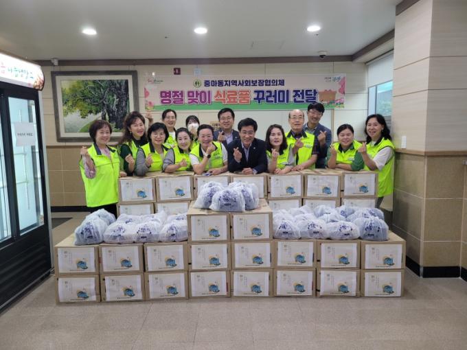 ½Ä·áǰ ²Ù·¯¹Ì(6¸¸¿ø »ó´ç)´Â Á߸¶µ¿ Áö¿ª»çȸº¸ÀåÇùÀÇü¿¡ ±âŹµÈ ÁöÁ¤±âʱÝÀ¸·Î ¸¶·ÃµÆÀ¸¸ç, ¼Ò°í±â¹Ì¿ª±¹ ¿Ü 11Á¾À¸·Î °£ÆíÇÏ°Ô ½Ä»çÇÒ ¼ö ÀÖ´Â ½Ä·áǰÀ¸·Î ±¸¼ºµÆ´Ù. ÇùÀÇü À§¿ø 25¸íÀÌ Áö¿ª ³» 50°¡±¸¸¦ Á÷Á¢ ¹æ¹®ÇØ ÃÑ 300¸¸¿ø »ó´çÀÇ ½Ä·áǰÀ» Àü´ÞÇÏ°í ¾ÈºÎ¸¦ »ìÆñ´Ù. ¹Ú±æ¿À Á߸¶µ¿ Áö¿ª»çȸº¸ÀåÇùÀÇü ¹Î°£À§¿øÀåÀº ¡°Ãß¼® ¸ÂÀÌ ½Ä·áǰ ²Ù·¯¹Ì Àü´ÞÀ» ÅëÇØ ¼Ò¿ÜµÈ ÀÌ¿ôµé°ú ¼ÒÅëÇϰí Á¶±ÝÀ̳ª¸¶ µµ¿òÀ» µå¸± ¼ö ÀÖ¾î ±â»Ú´Ù¡±¸ç ¡°¸ðµÎ°¡ dz¼ºÇÏ°í ¶æ±íÀº Ãß¼® ¸íÀýÀ» º¸³»½Ã±â¸¦ ¼Ò¸ÁÇÑ´Ù¡±°í ÀüÇß´Ù.