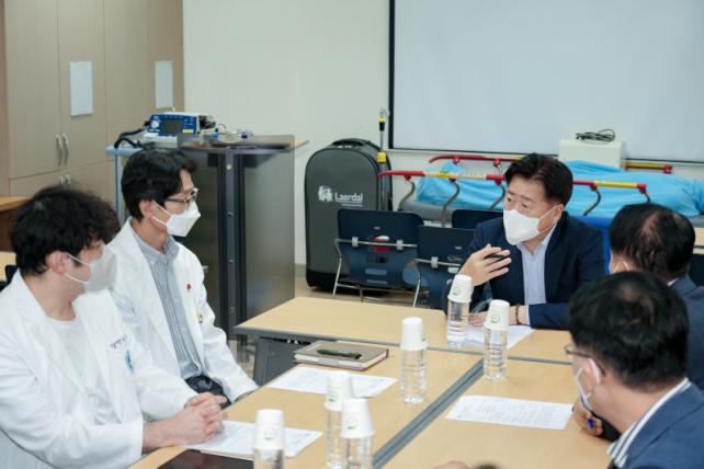 Á¦ÁÖ´ëÇб³º´¿ø ÀÀ±Þ½ÇÀ» ãÀº ¿À¿µÈÆ Áö»ç´Â Ãß¼®¿¬ÈÞ ±â°£ µµ¹Î°ú °ü±¤°´µéÀÇ ¾ÈÀüÀ» À§ÇÑ ºñ»óÁø·á ¹× ÀÀ±ÞÀÇ·áü°è¸¦ »ìÇǰí, ÀÇ·áÁøÀ» ºñ·ÔÇÑ °ü°èÀÚµéÀÇ ¾Ö·Î¡¤°ÇÀÇ»çÇ׿¡ ±Í ±â¿ï¿´´Ù.À̳¯ ÀÇ·áÁøµéÀº ¡âÀÀ±ÞȯÀÚ¸¦ ¾ÈÀüÇÏ°Ô ¼ö¿ëÇÒ ¼ö ÀÖ´Â ¹æ¾È °±¸ ¡âȯÀÚ Àü¿ø °ü·Ã ÃѰý½Ã½ºÅÛ ¸¶·Ã ¡âÀÀ±Þ½Ç ´ë±â ȯÀÚ Á¶Ä¡ ¡âÀÀ±Þ½Ç ±Ô¸ð È®´ë µîÀÇ ÀǰßÀ» Á¦½ÃÇß´Ù.