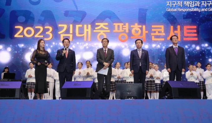 º» °ø¿¬¿¡¼± ÆòÈ·Î¿î ¼¼»óÀ» ²Þ²Ù´Â ¸ñÆ÷½Ã¸³¼Ò³â¼Ò³àÇÕâ´ÜÀÇ ÇÕâ, ¹ÚÆò¹Î ¸íâÀÌ ±è´ëÁß Àü ´ëÅë·ÉÀÌ »ýÀü¿¡ ÁÁ¾ÆÇß´ø ÆÇ¼Ò¸® ÃáÇâ°¡ Áß ¡®¾¦´ë¸Ó¸®¡¯¸¦ ¼±º¸¿´´Ù. À̾î Àü³²µµ È«º¸´ë»ç ¼Û°¡ÀÎÀ» ºñ·ÔÇØ ³²Áø, ¾Èġȯ, À̺¸¶÷ÀÇ ¹«´ë°¡ ²Ù¸çÁ³´Ù. ¶ÇÇÑ ±è´ëÁß Àü ´ëÅë·ÉÀÇ »ýÀü ±â·Ï ¿µ»óÀ» »ó¿µÇÏ¸ç ±¹¹ÎÀ» »ç¶ûÇÏ°í ±¹¹ÎÀ» À§ÇØ Çå½ÅÇß´ø Á¤½ÅÀ» ±â¾ïÇÏ´Â ½Ã°£À» °¡Á³´Ù.