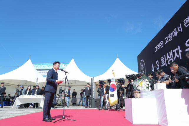 Á¦ÁÖÆ¯º°ÀÚÄ¡µµ¿Í Á¦ÁÖ4¡¤3ÆòÈÀç´ÜÀº 5ÀÏ ¿ÀÀü 11½Ã 30ºÐ °íÀÎÀÇ °íÇâÀÎ Á¶ÃµÀ¾ ºÏÃÌÆ÷±¸ ÀÏ¿ø¿¡¼ ¡®´ëÀü °ñ·É°ñ ¹ß±¼À¯ÇØ ½Å¿øÈ®ÀÎ 4¡¤3 Èñ»ýÀÚ ºÀȯ½Ä¡¯À» °ÅÇàÇß´Ù. ´ëÀü °ñ·É°ñ¿¡¼ ¹ß±¼µÈ À¯Çذ¡ 74³â Àü Çà¹æºÒ¸íµÈ °í(ͺ) ±èÇÑÈ« ´ÔÀ¸·Î È®Àεʿ¡ µû¶ó ¼¼Á¾Ã߸ðÀÇÁý¿¡ ¾ÈÄ¡µÈ °íÀÎÀÇ À¯Çظ¦ À̳¯ Ç×°øÆíÀ¸·Î Á¦ÁÖ·Î ºÀÈ¯ÇØ¿Ô´Ù.
