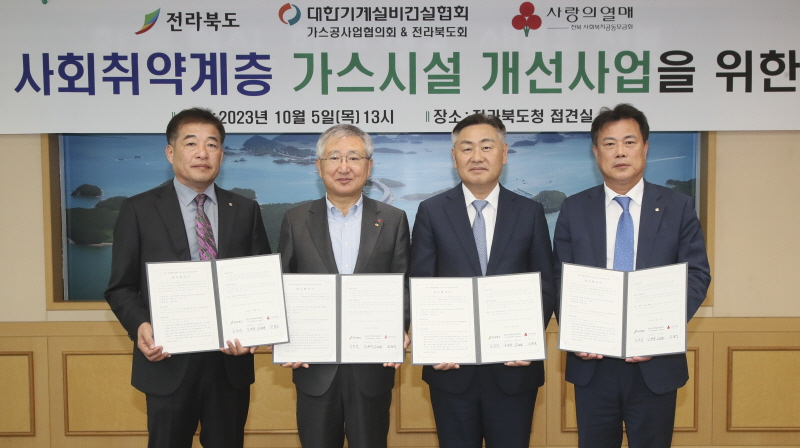 µµ´Â 5ÀÏ µµÃ» ȸÀǽǿ¡¼ ±è°ü¿µ Àü¶óºÏµµÁö»ç, ±è¿µÅ ´ëÇѱâ°è¼³ºñ°Ç¼³Çùȸ °¡½º°ø»ç¾÷ÇùÀÇȸÀå, À¯Á¦¿µ ´ëÇѱâ°è¼³ºñ°Ç¼³Çùȸ Àü¶óºÏµµÈ¸Àå, ±èµ¿¼ö »çȸº¹Áö°øµ¿¸ð±ÝȸÀåÀÌ Âü¼®ÇÑ °¡¿îµ¥ ¡®Àü¶óºÏµµ »çȸÃë¾à°èÃþ °¡½º½Ã¼³ Áö¿ø¡¯À» À§ÇÑ ¾÷¹«Çù¾àÀ» ü°áÇß´Ù.