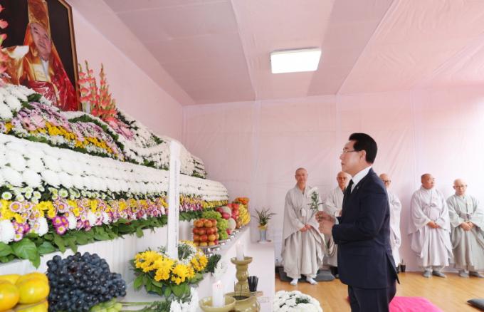 ±è¿µ·Ï Áö»ç´Â À̳¯ ºÐÇâ¼Ò¿¡¼ ºÒ±³ Á¶¹® ¿¹Àý¿¡ µû¶ó ÁöÇã ½º´ÔÀ» Ã߸ðÇß´Ù.ÀÌ¾î ¡°Å« ½º½ÂÀ̽ŠÇѱ¹ºÒ±³ ŰíÁ¾ ÁöÇã´ç Áö¿ë ´ëÁ¾»ç´Ô²²¼ »ç¹Ù¼¼°è¸¦ µÚ·Î Çϰí Àû¸ê(îÖØþ)ÀÇ ±æ·Î ¶°³ª¼Ì´Ù¡±¸ç ¡°´ëÁ¾»ç´Ô²²¼ ³²±â½Å ¹ßÀÚÃë¿Í °¡¸£Ä§À» µîºÒ »ï¾Æ ¿Â µµ¹ÎÀÌ Æí¾ÈÇÑ Àü³²À» ¸¸µé±â À§ÇØ È¥½ÅÀÇ ÈûÀ» ´ÙÇϰڴ١±°í ´ÙÁüÇß´Ù.