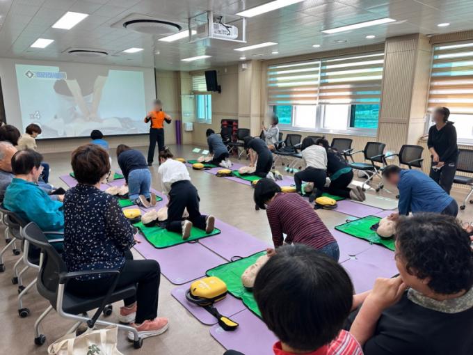 Áö¿ªÁֹΠ30¸íÀ» ´ë»óÀ¸·Î ½Ç½ÃÇÑ À̹ø ±³À°Àº ½ÉÆó¼Ò»ý¼úÀÇ Á߿伺, ÀÀ±ÞȯÀÚ ¹ß»ý ½Ã 119½Å°í ¿ä·É, ¿Ã¹Ù¸¥ °¡½¿¾Ð¹Ú ¹æ¹ý, ÀÚµ¿½ÉÀåÃæ°Ý±â(AED) »ç¿ë¹ý°ú ±âµµ Æó¼â ÀÀ±Þóġ(ÇÏÀÓ¸®È÷¹ý) µî Áö¿ªÁֹεéÀÌ ½Ç»ýȰ¿¡ Àû¿ëÇÒ ¼ö ÀÖµµ·Ï À̷аú ½Ç½À À§ÁÖ·Î ÁøÇàµÆ´Ù.