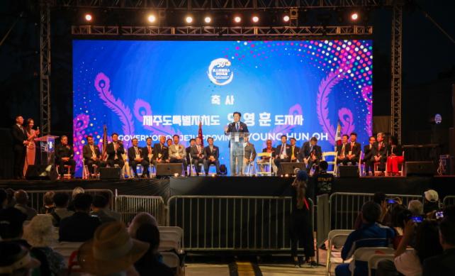 | ¿À¿µÈÆ Á¦ÁÖÆ¯º°ÀÚÄ¡µµÁö»ç°¡ Áö³ 12ÀÏ(ÇöÁö ½Ã°¢) ¹Ì±¹ ·Î½º¾ØÁ©·¹½º ÇÑÀΟ¿î ¼¿ï±¹Á¦°ø¿ø¿¡¼ ¿¸° ¡®2023³â Á¦50ȸ LAÇÑÀÎÃàÁ¦¡¯¿¡¼ Âü°¡ÀÚµé°ú ±â³ä»çÁøÀ» ÃÔ¿µÇϰí ÀÖ´Ù. |