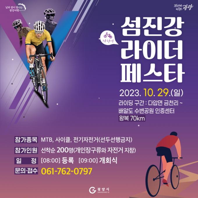 Âü°¡ ½ÅûÀº ÆòÀÏ ¿ÀÀü 10½ÃºÎÅÍ ¿ÀÈÄ 4½Ã±îÁö´Â ÀüÈ(061-762-0797)·Î, ±× ¿Ü ½Ã°£Àº ¹®ÀÚ(010-7930-0071)·Î ¹Þ´Â´Ù.¼¶Áø° ¶óÀÌ´õ Æä½ºÅ¸´Â ¿À´Â 29ÀÏ ¿ÀÀü 8½ÃºÎÅÍ Âü°¡ µî·ÏÀ» ½ÃÀÛÇØ 9½Ã °³È¸½ÄÀ» ¿°í ¸öÇ®±â üÁ¶, ¶óÀ̵ù¿¡ µé¾î°¥ ¿¹Á¤ÀÌ´Ù.